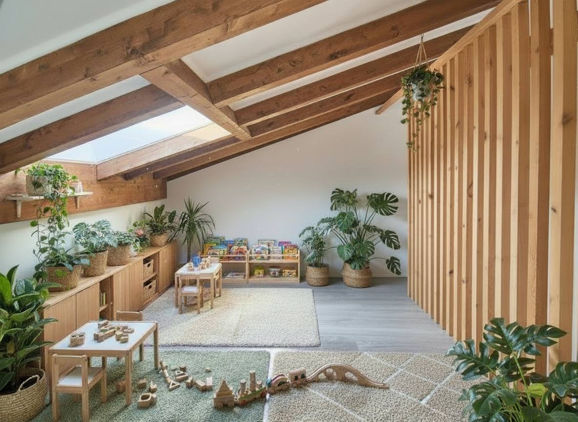 Bajo cubierta: una habitación adicional y el espacio destinado a instalaciones.
